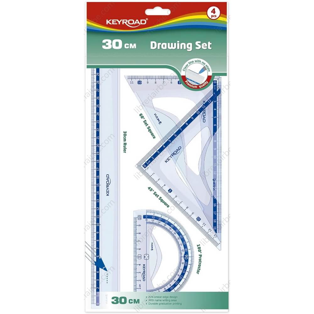 Estuche Geométrico, de 30 cm, de Plástico Transparente, con 4 Piezas, KEYROAD