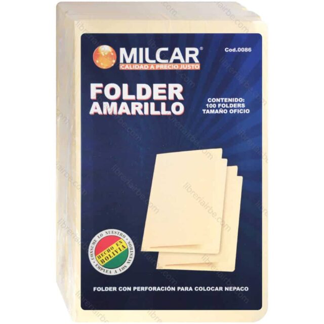 Folder Manila de Cartulina, 200 g/m², MILCAR, Tamaño Oficio, Paquete de 100 Piezas, Amarillo Marfil