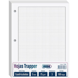 Hojas Trapper IRBE, Tamaño Carta, Paquete de 100, con 3 Perforaciones, Papel de 75 g/m², Cuadriculadas, 5 mm